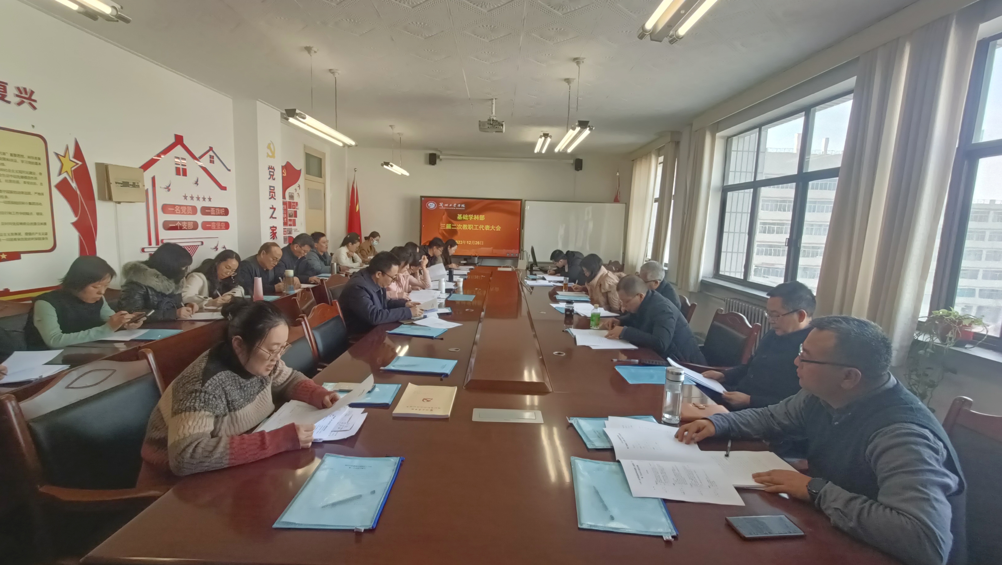 12月26日,基础学科部在部门会议室召开第三届教职工大会第二次会议,会议由基础学科部主任张豫冈主持,部门全体教师参加会议。