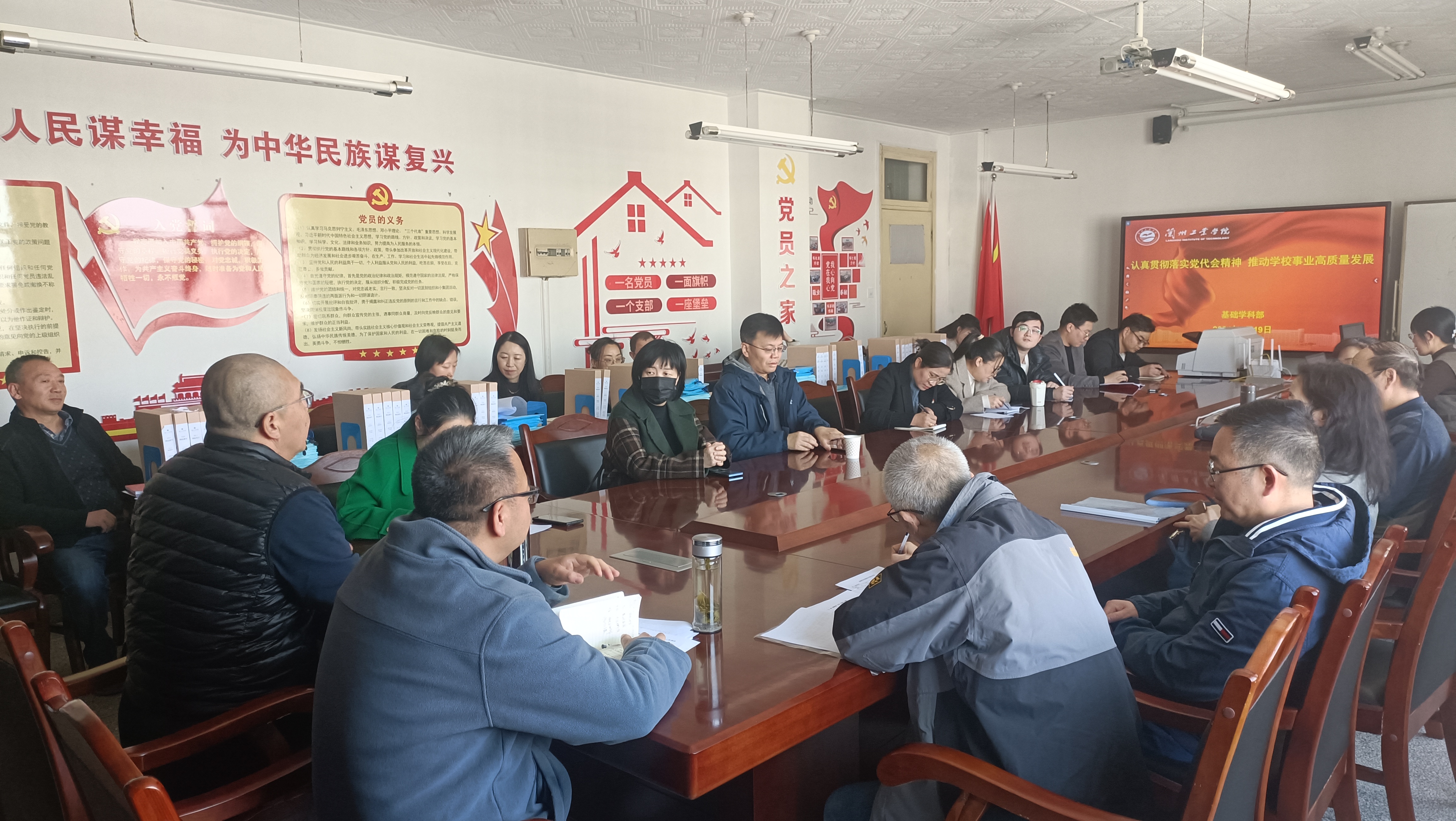 3月19日下午,基础学科部在部门会议室召开集体学习会,专题学习中国共产党兰州工业学院第二次代表大会精神。会议由基础学科部党总支书记刘军主持,部门全体教师参加了会议。