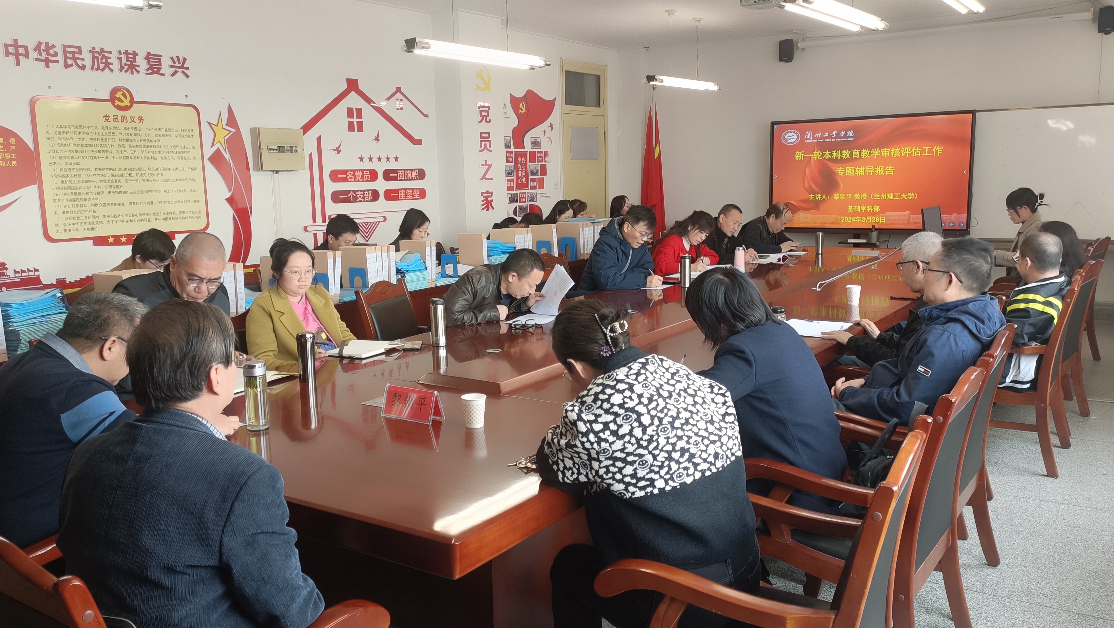 3月26日,基础学科部在部门会议室召开新一轮本科教育教学审核评估辅导报告会。兰州理工大学理学院黎锁平教授应邀作专题辅导报告。部门主任张豫冈主持会议,全体教师参加会议。