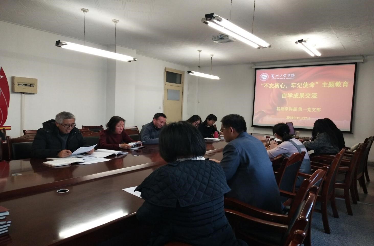 2019年11月27日下午,第一党支部在部门会议室召开“不忘初心,牢记使命”主题教育自学成果交流会。