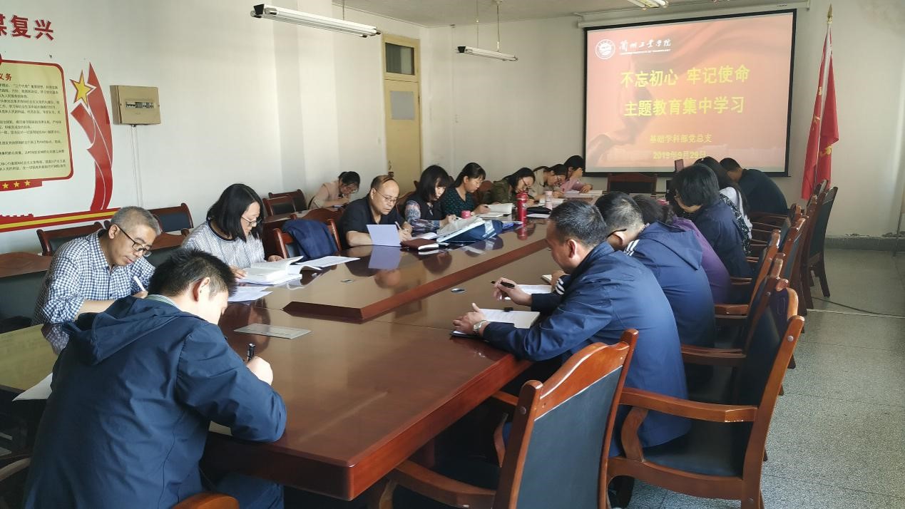 2019年9月29日下午,在基础部会议室,召开了“不忘初心,牢记使命”主题教育集中学习会议。